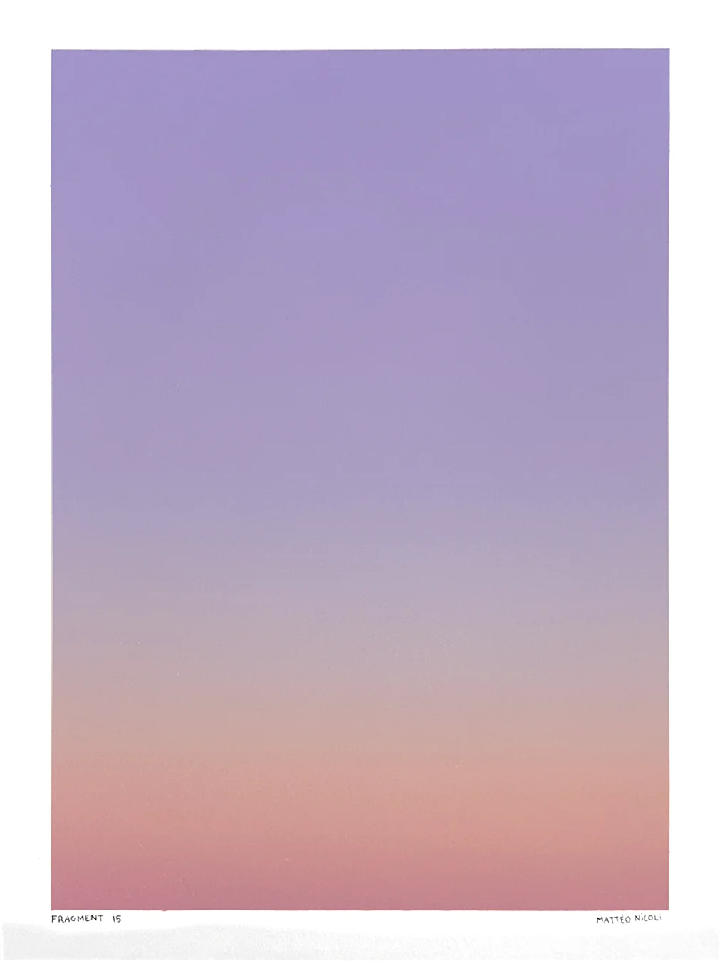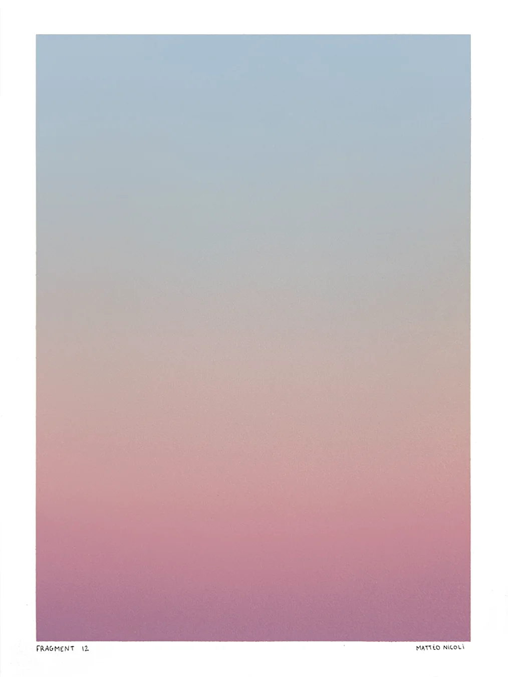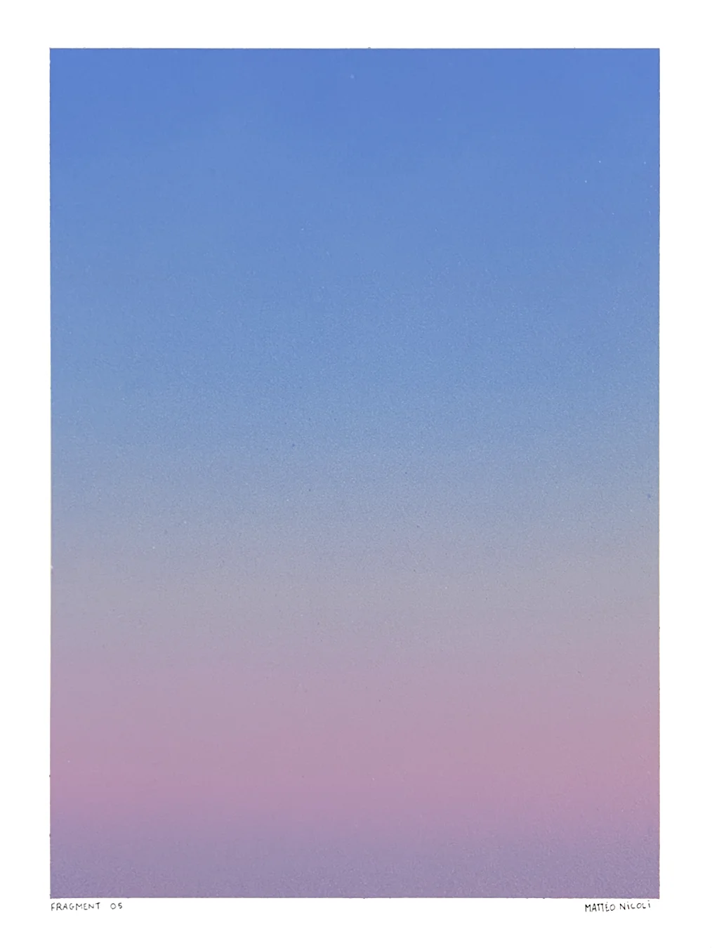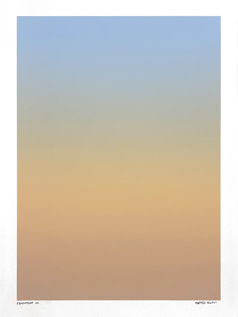 FRAGMENT est une série de 20 œuvres uniques explorant les variations de lumière du ciel aux moments de transition du jour. Chaque pièce capture un fragment du ciel, entre la nuit et le jour, à l’aube ou au crépuscule, lorsque les couleurs se transforment progressivement et que le ciel révèle de multiples nuances.