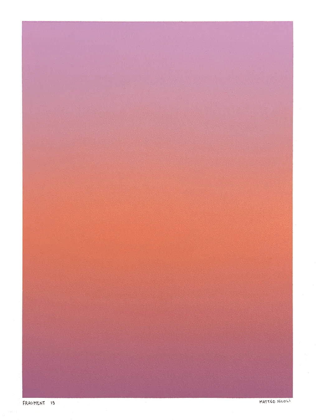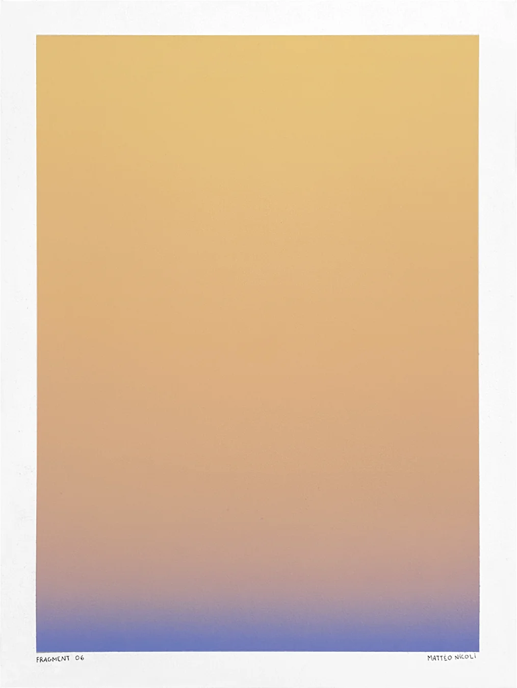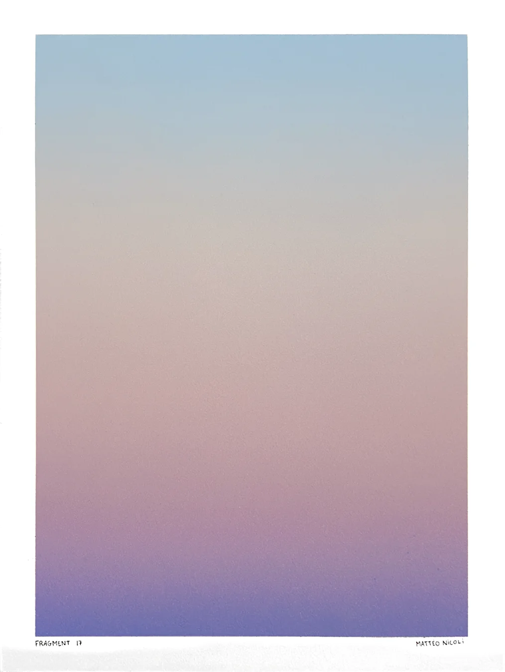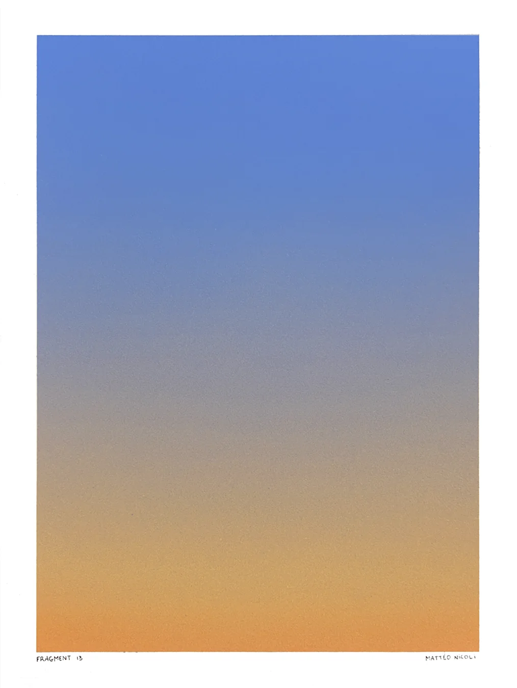 FRAGMENT est une série de 20 œuvres uniques explorant les variations de lumière du ciel aux moments de transition du jour. Chaque pièce capture un fragment du ciel, entre la nuit et le jour, à l’aube ou au crépuscule, lorsque les couleurs se transforment progressivement et que le ciel révèle de multiples nuances.