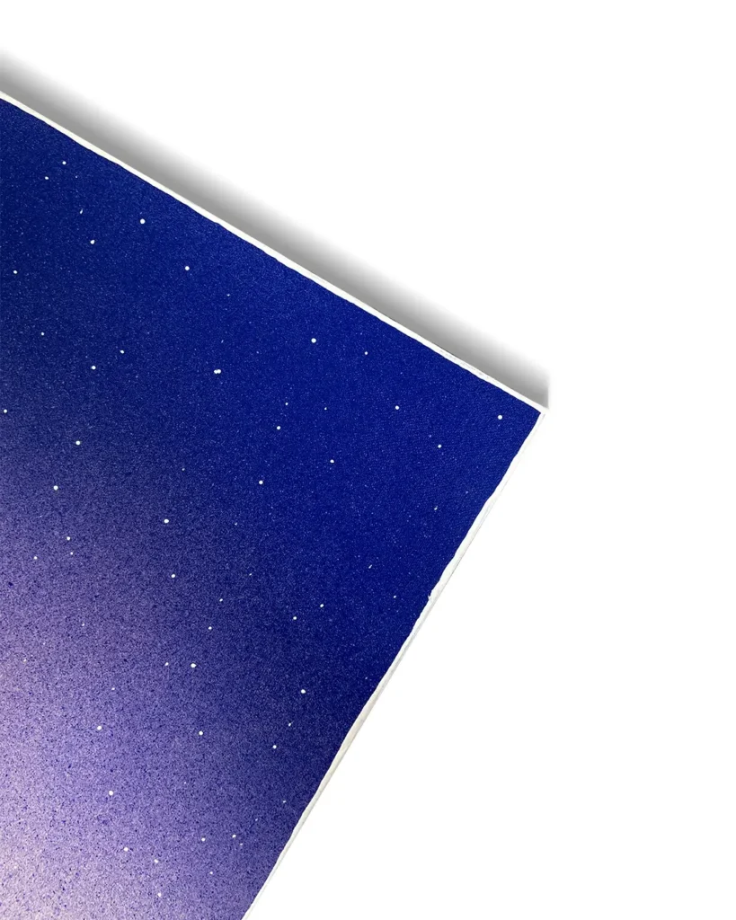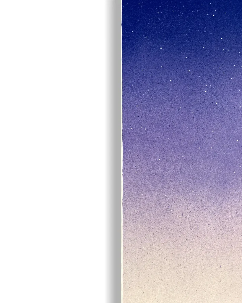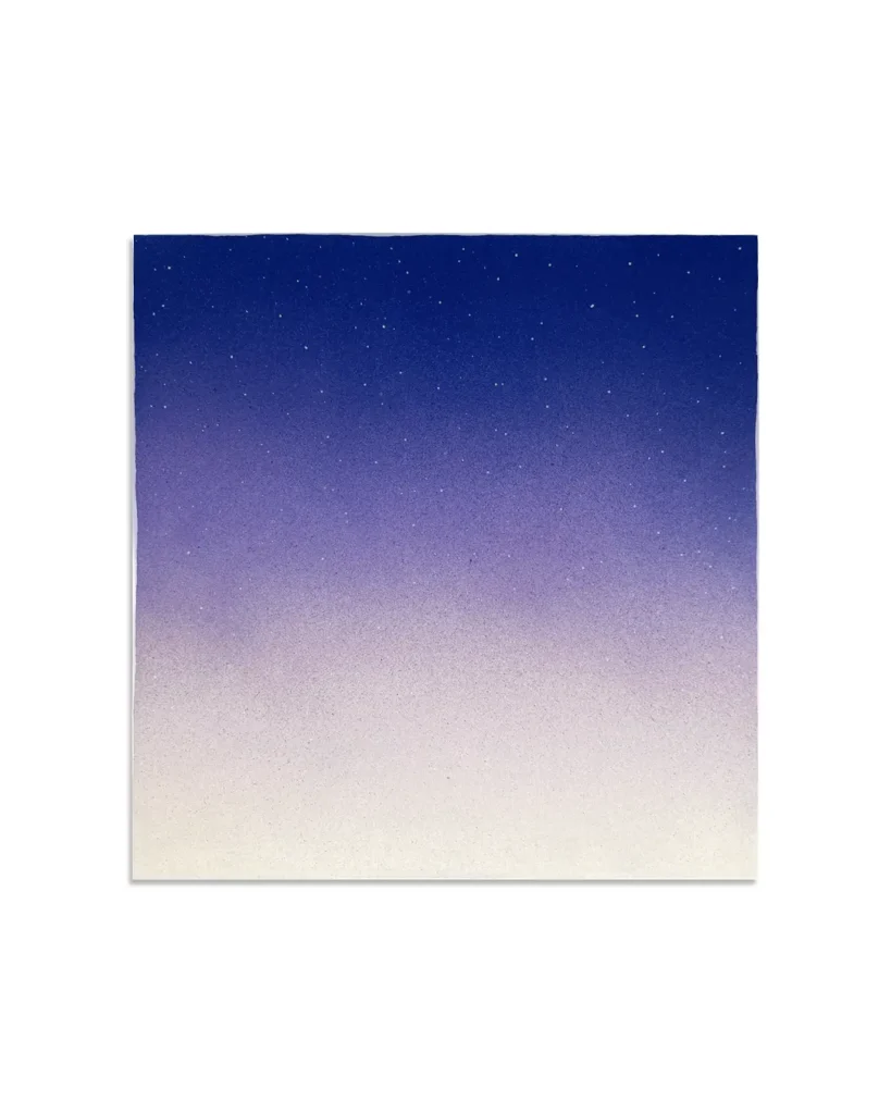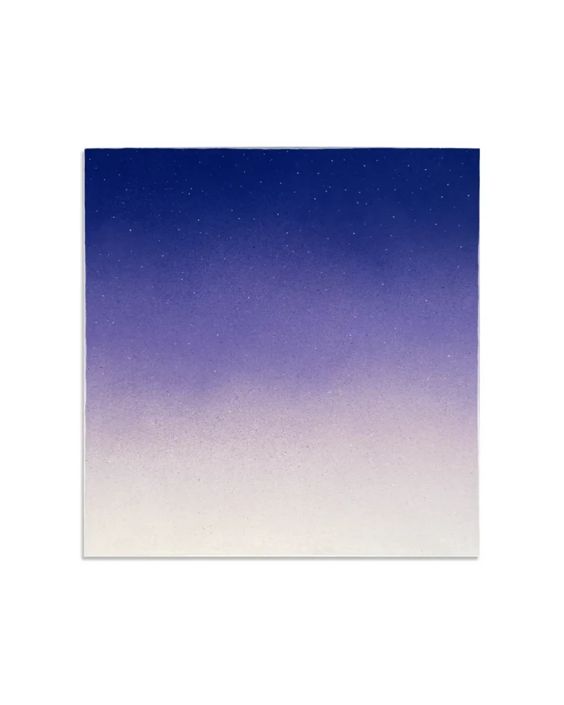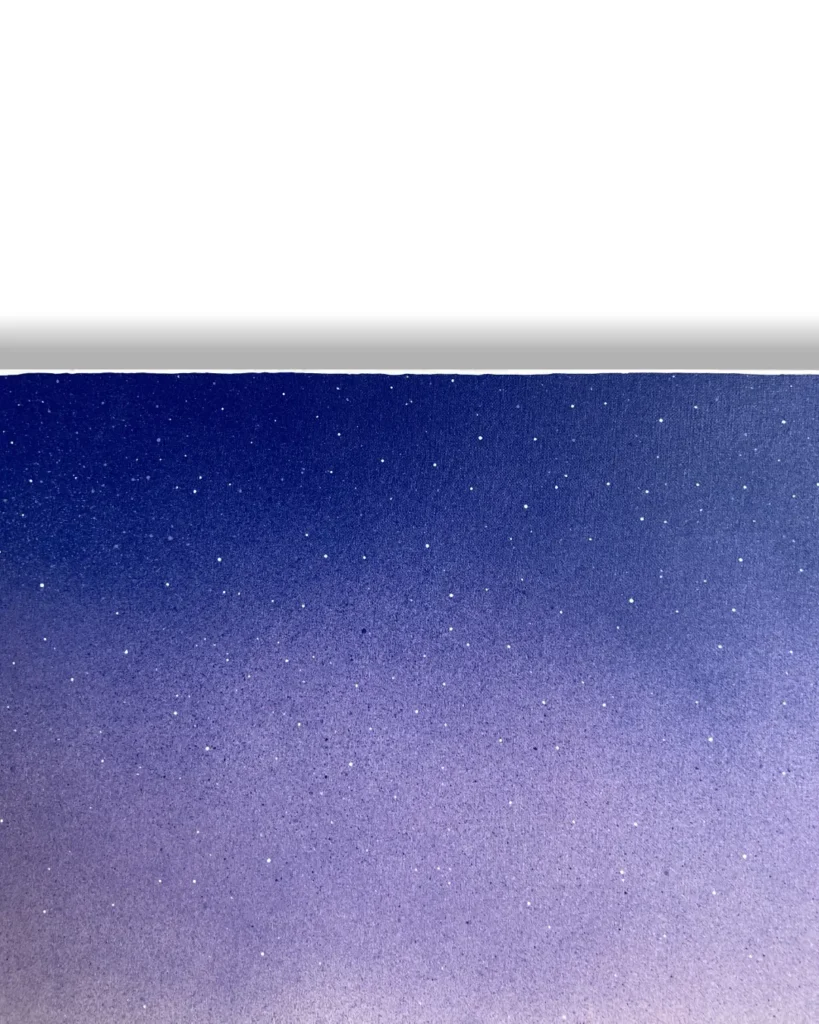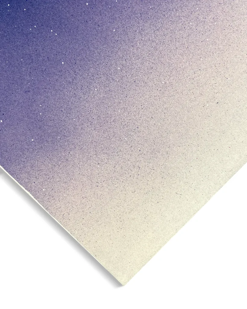 Les dégradés de bleu et de violet évoquent le ciel nordique, où la lumière change radicalement selon les saisons. En hiver, le soleil disparaît, laissant place à une obscurité continue, tandis qu’en été, la nuit cesse d’exister. Cette dualité se reflète dans la douceur du dégradé, oscillant entre clarté et profondeur.