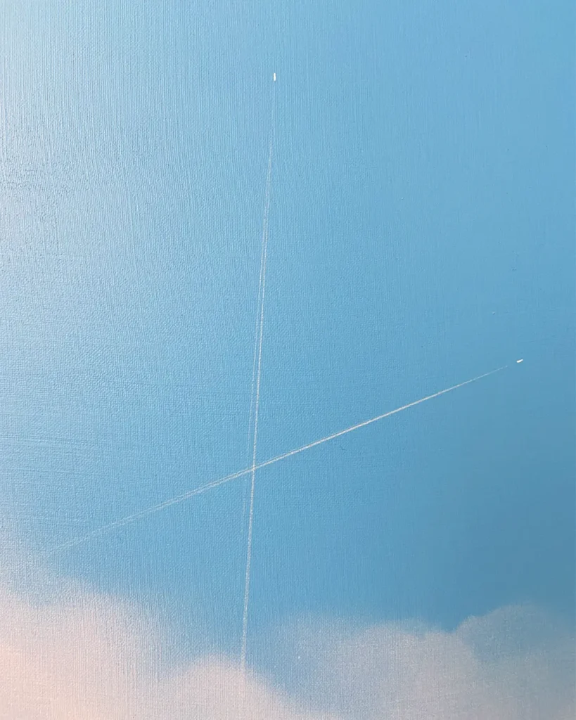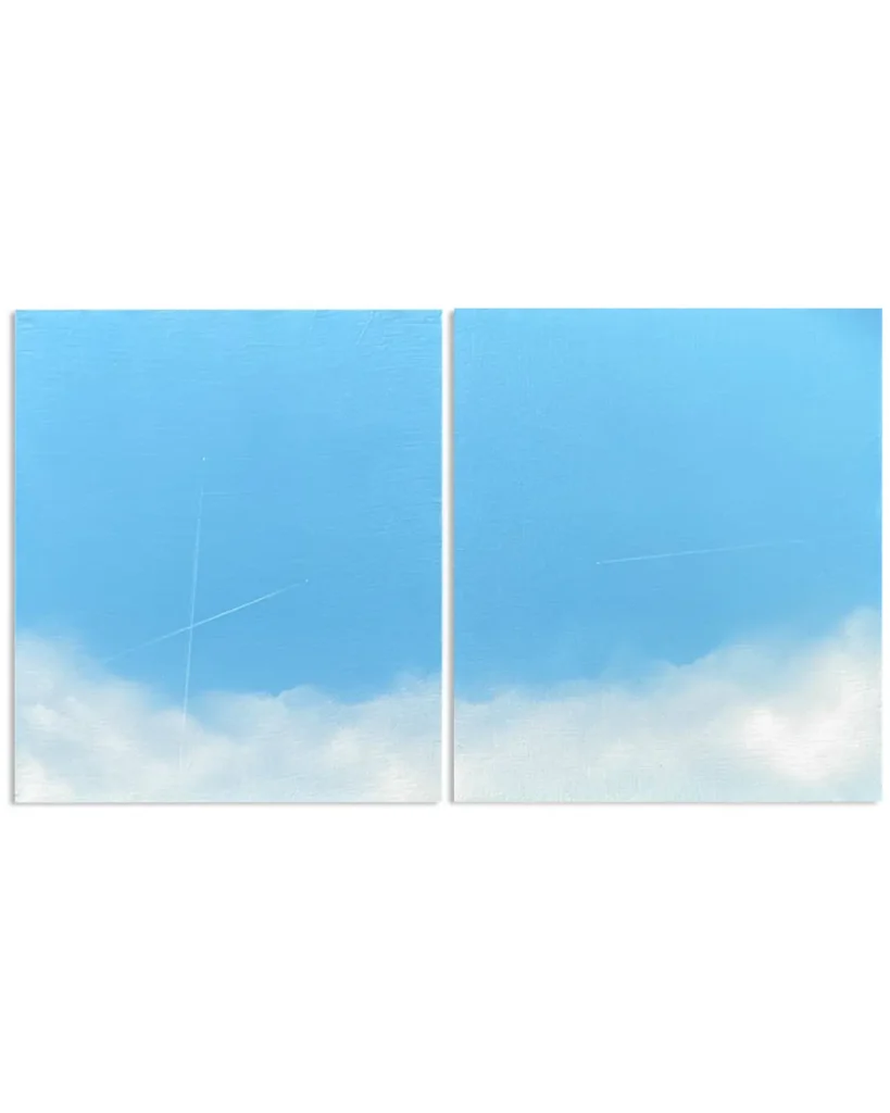 Intitulé Tuvalu, ce diptyque capture l’immensité du ciel au-dessus de l’un des plus petits pays du monde, perdu au milieu du Pacifique. Le bleu pur du ciel, ponctué de nuages légers, évoque la quiétude d’un territoire isolé et exempt de pollution.